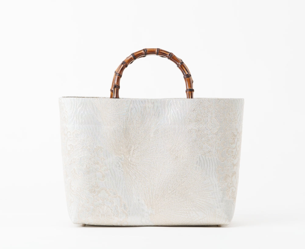 ナチュラルカラーの竹持ち手と和柄がベストマッチ。底鋲付きなので汚れる心配もなし。いつもよりちょっとおしゃれして出かけるディナーパーティーで大活躍のエタニティートートバッグ。
