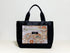 The base tote bag is made of durable Fuji Kinbai® No. 8 black canvas, which is treated with a light water-repellent finish, giving it a sturdy yet flexible texture.