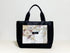 The base tote bag is made of durable Fuji Kinbai® No. 8 black canvas, which is treated with a light water-repellent finish, giving it a sturdy yet flexible texture.
