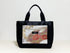 The base tote bag is made of durable Fuji Kinbai® No. 8 black canvas, which is treated with a light water-repellent finish, giving it a sturdy yet flexible texture.