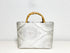 Introducing the Tote Bag with natural bamboo handle crafted from premium vintage Obi sash with platinum leaves. Enjoy the unparalleled beauty and delicate brilliance that this exquisite obi offers.