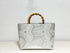 Introducing the Tote Bag with natural bamboo handle crafted from premium vintage Obi sash with platinum leaves. Enjoy the unparalleled beauty and delicate brilliance that this exquisite obi offers.