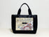 The base tote bag is made of durable Fuji Kinbai® No. 8 black canvas, which is treated with a light water-repellent finish, giving it a sturdy yet flexible texture.
