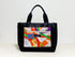 The base tote bag is made of durable Fuji Kinbai® No. 8 black canvas, which is treated with a light water-repellent finish, giving it a sturdy yet flexible texture.