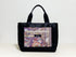 The base tote bag is made of durable Fuji Kinbai® No. 8 black canvas, which is treated with a light water-repellent finish, giving it a sturdy yet flexible texture.