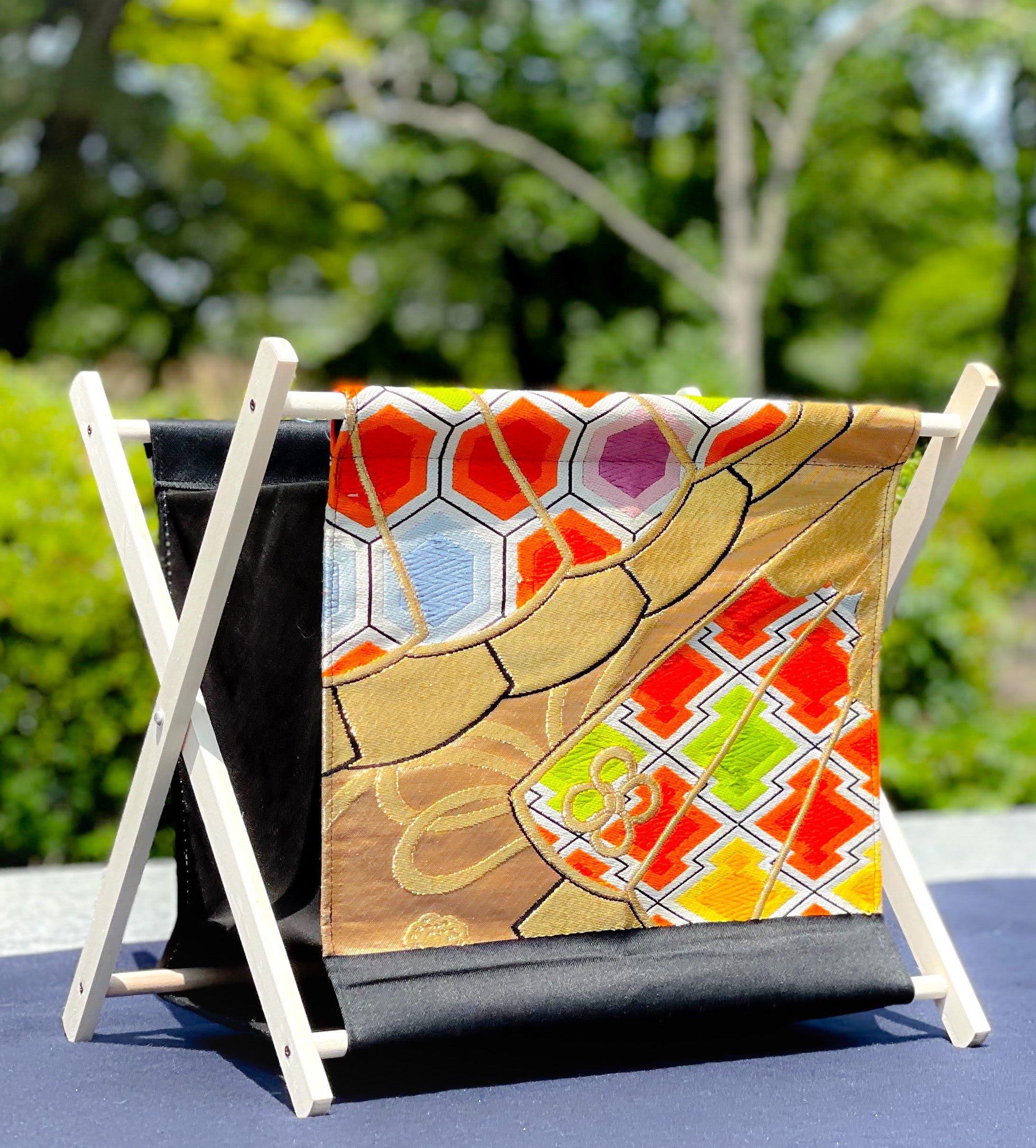 着物地や帯地の美しさを、毎日の生活のなかで取りれていいただけるよう、ファブリックパネルやラックなど日常でお使いいただけるインテリア商品を製作します。