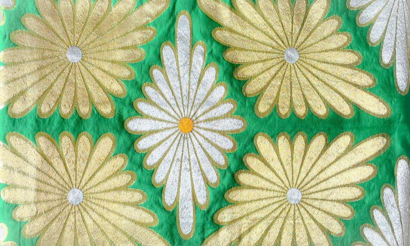The "hana-hishi" pattern, featuring four petals within a lozenge, is widely utilized on white fabric and obi sashes due to its remarkably beautiful design. Its simple yet well-structured shape allows for versatile combinations with other patterns, making it suitable for wear throughout the seasons. When four of these shapes are combined to create a larger lozenge, it is referred to as "yotsu-hana-hishi" or "four hana-hishi."