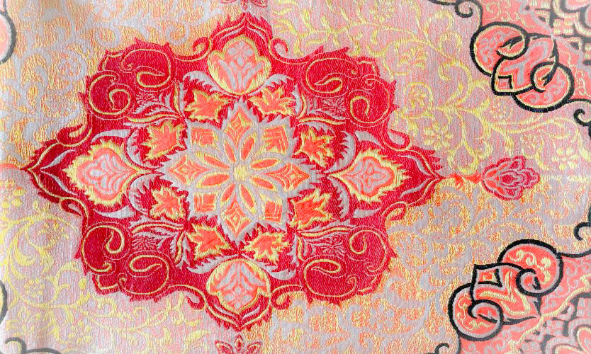 中国から伝えられた花文様であることから、この名がつけられました。空想の花をモチーフとして飛鳥時代から奈良時代にかけて発達し、5弁から8弁にまとめて和風にアレンジされたのが平安時代頃と考えられています。ベースは円形に構成されたものですが、菱形などさまざまな形状で表現されています。