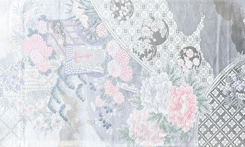 ■ 西陣|唐織|御所車花文|九百錦|プラチナ二重箔 ■