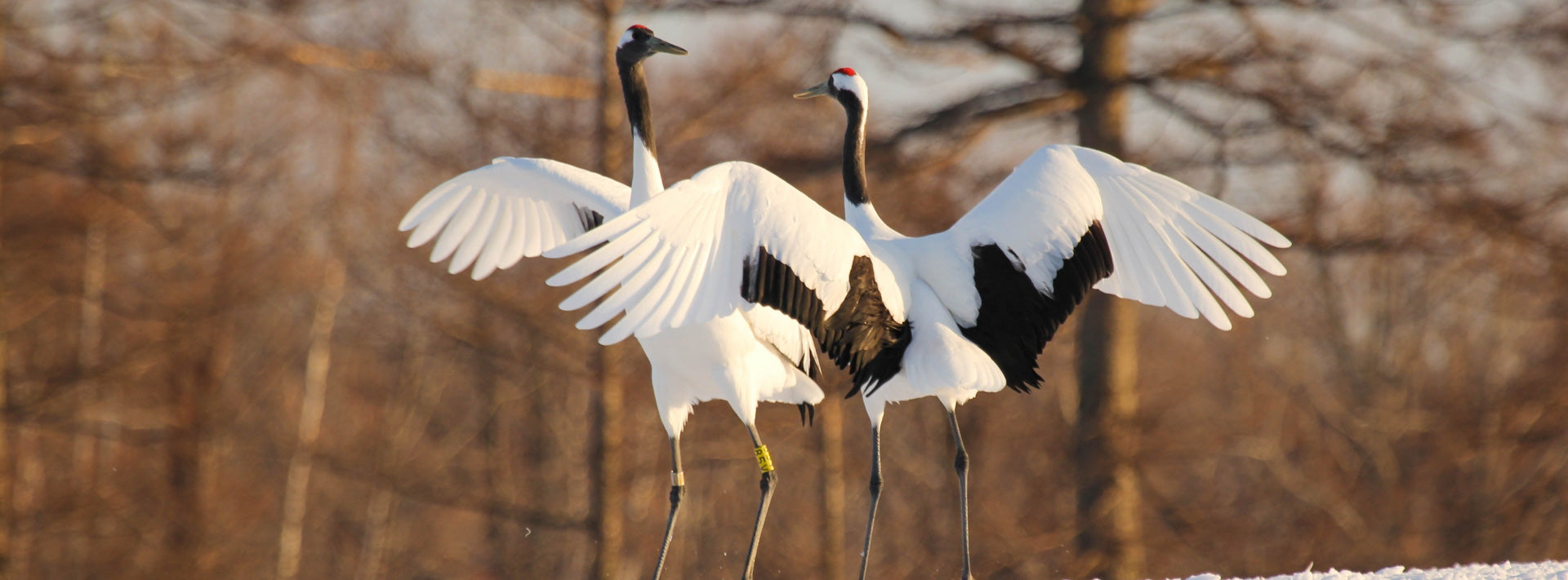 縁起物の代表格といってもいい鶴と亀。「飛鶴」「雲鶴」「郡鶴」「立鶴」「鶴の丸」など、鶴は鳥文様の中では、最も表現のバリエーションが豊富です。歴史が古いのは亀で、弥生時代の銅鐸などにも見られます。亀は単独で描かれることはほとんどなく、多くは鶴とともに長寿の象徴として表現されています。