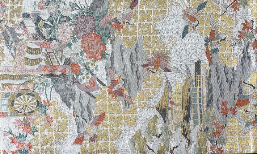 特に御所の風景を表現した御所解き文様や源氏物語絵巻のモチーフとして華やかな風情を添えて描かれることが多い文様です。