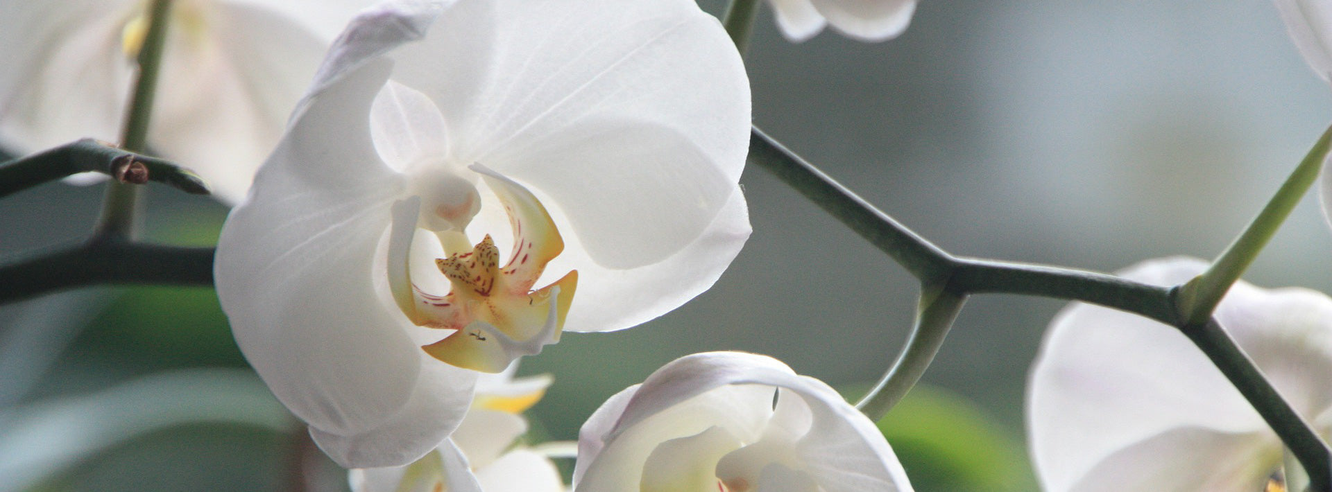 蘭花文と呼ばれることもあり、松・竹・梅と組み合わせて「四友」、竹・梅・菊と組み合わせて「四君子」と称される文様です。中国産の蘭が描かれることが一般的でしたが、現在は胡蝶蘭やカトレアなどの洋蘭が用いられることもあります。