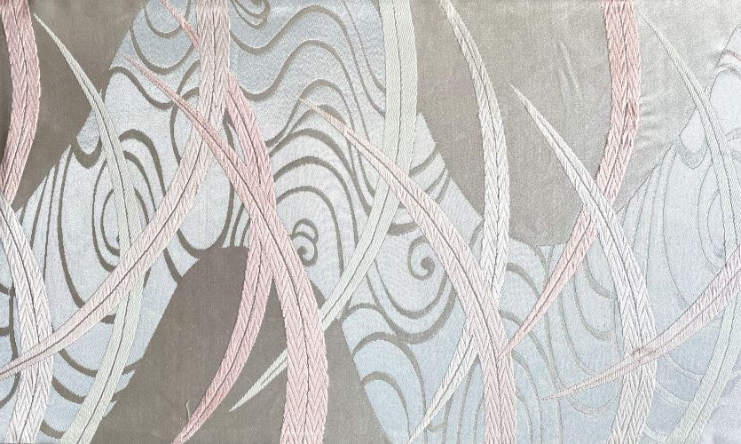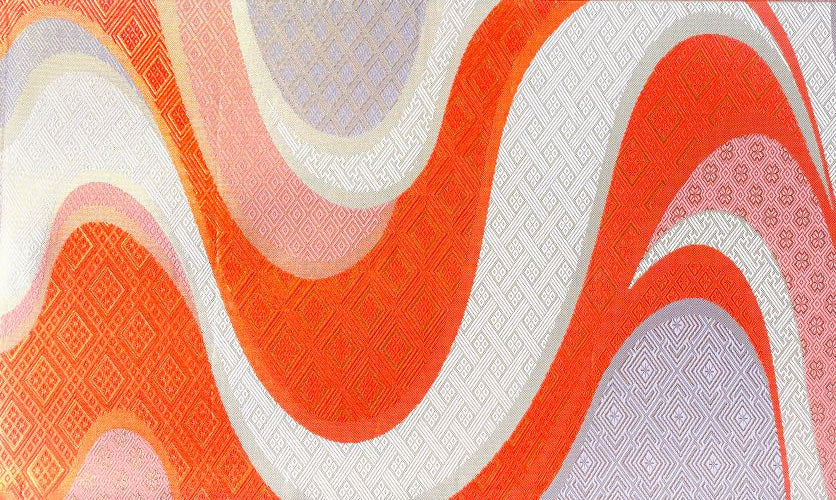 The flowing water depicted on kimonos and obis is often believed to represent a stream or a brook. However, it can also convey diverse meanings, such as symbolizing the journey of life from a single droplet merging into the vast sea. Common landscape patterns like "Chaya-tsuj," "Gosho-toki Monyo," along with combinations featuring flowing water, such as "Kakitsubata" and "Ayame" patterns, are widely recognized in the world of textile design.