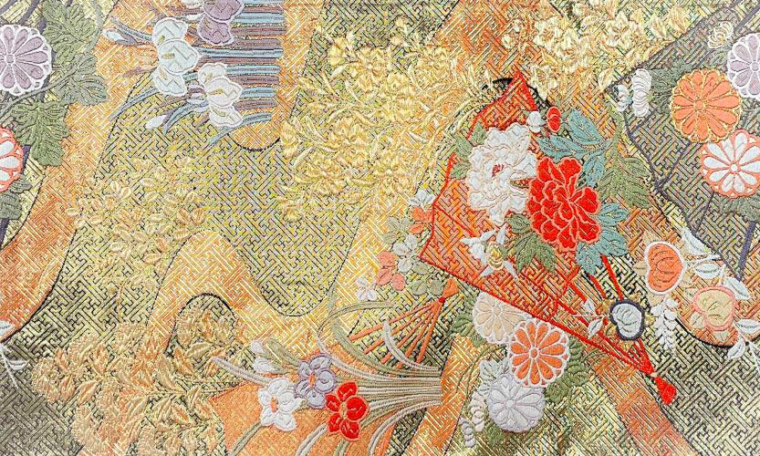 桃山時代に中国から伝わった織物「紗綾」の地紋に使われていたことからこの名が付けられた、卍を変形させ連続して配した文様で「万字繋ぎ」と呼ばれることもあります。女性の慶事礼装用の半衿は紗綾形地紋と決められていた頃もありますが、現在は着物や長襦袢の地紋として多く用いられます。