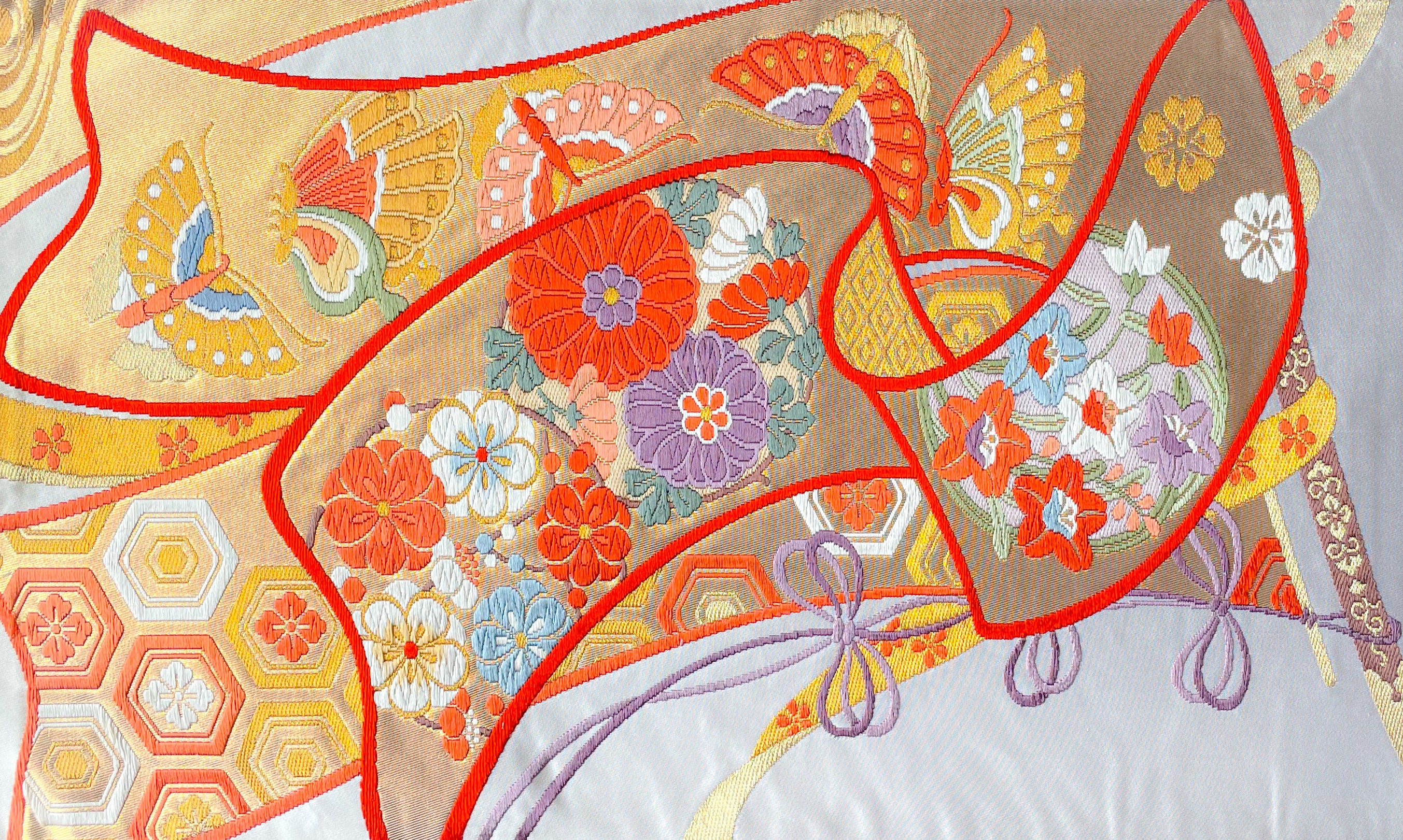 文字を見ておわかりかもしれませんが、御簾とはすだれのことです。平安時代の建築様式である寝殿造りにおいて母屋と廂の間にかけられたり、日除けとして牛車に用いられたりしました。継ぎ目には美しい布と紐が使われ、江戸時代には「几帳」「檜扇」とともに王朝文化の象徴としても描かれました。