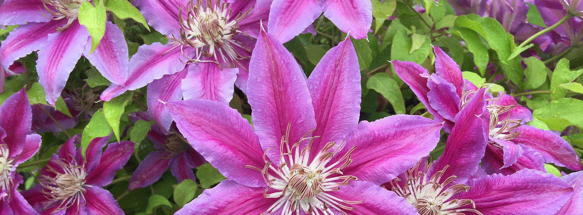 初夏に白や紫の花を咲かせる植物で、鉄の針金のようなしっかりとした蔓を持つことから、この名が付いたといわれています。日本に入ってきたのは室町時代中期以降で、桃山時代の能装束や小袖にも、鉄線を唐草のように表現したものが残されており、江戸時代には俳句などにも詠まれています。