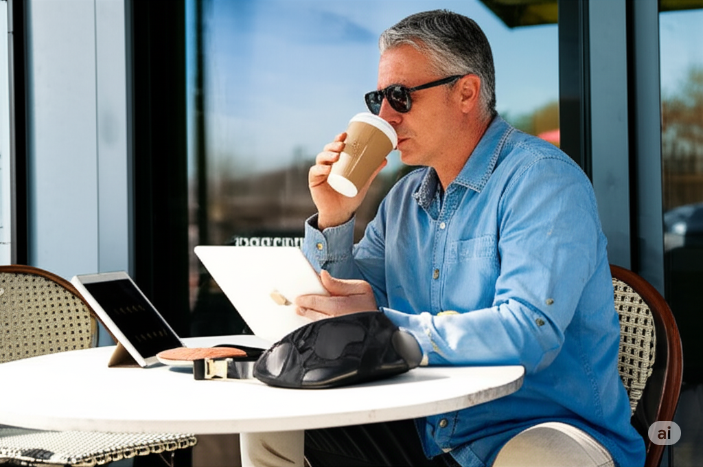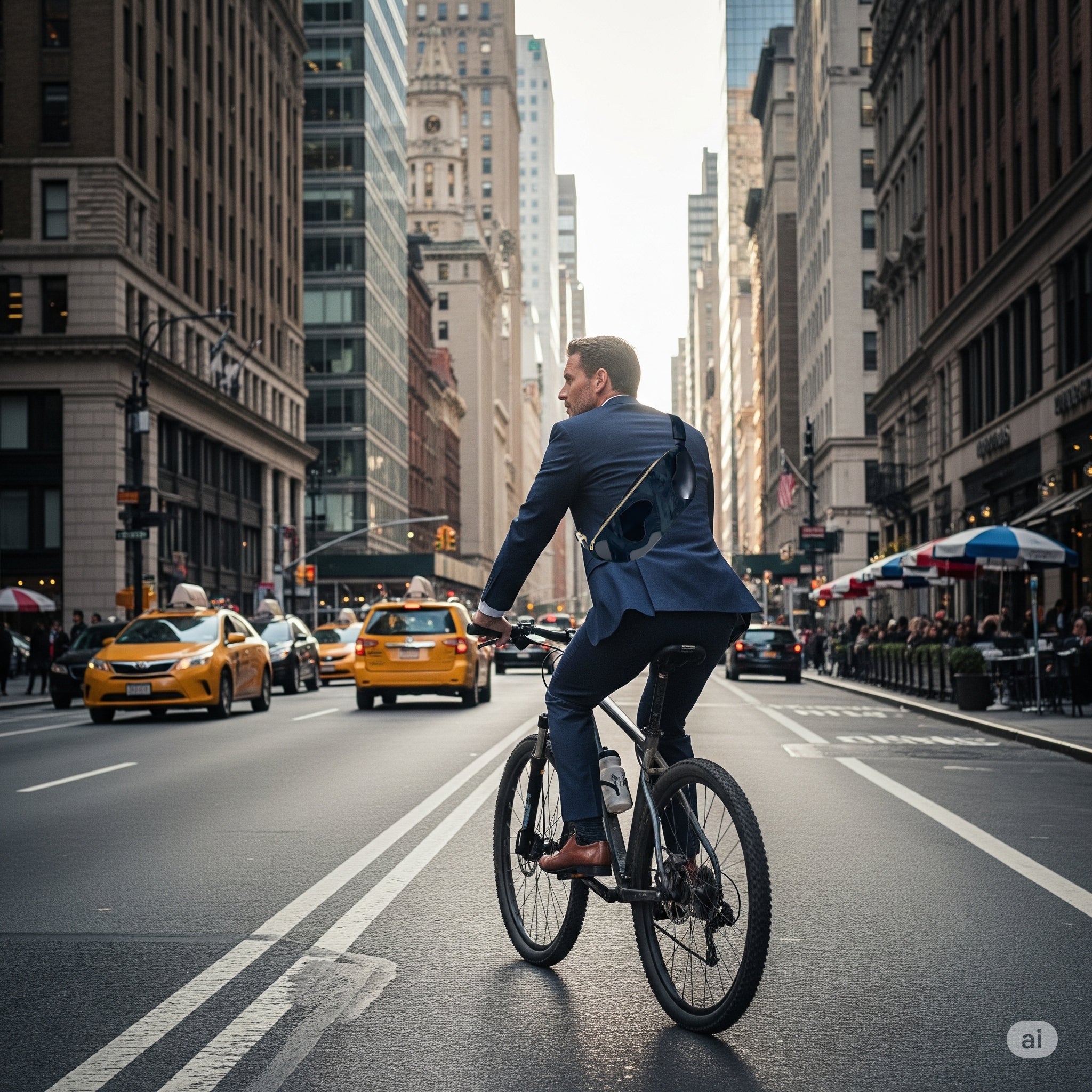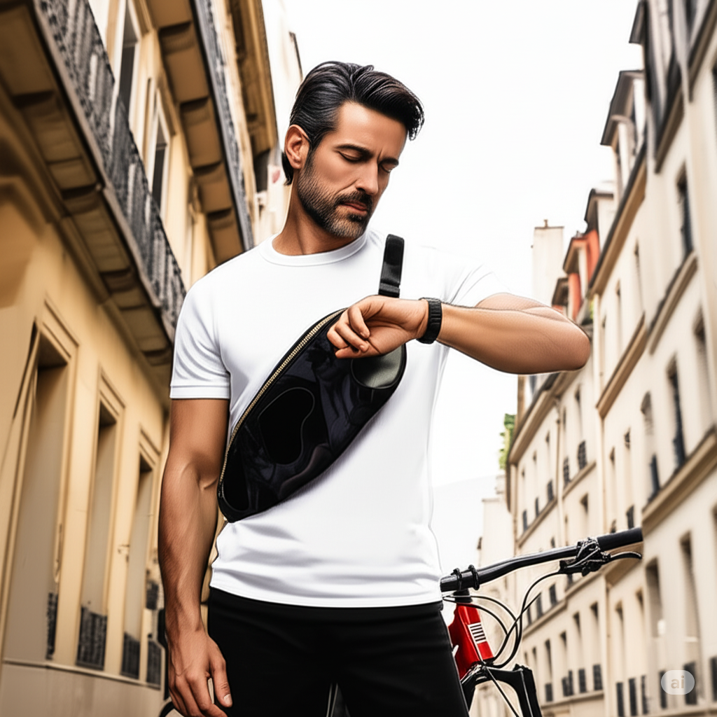光沢のある黒革と渋い黒帯。革のシックな風格は上質感が大人の普段使いにもセンスと上品さをプラス。両手が空き、丈夫な素材で自転車移動にも。
